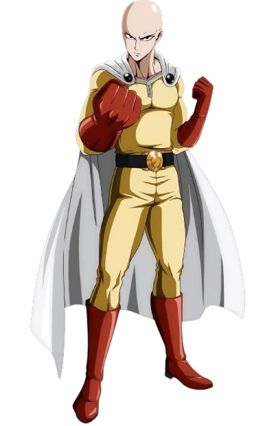 - Is a Primary-Color Champion: Saitama wears a yellow jumpsuit with red gloves and boots.